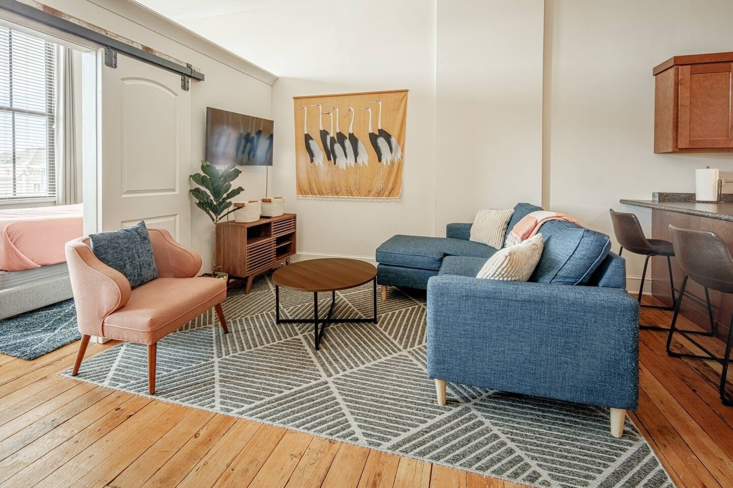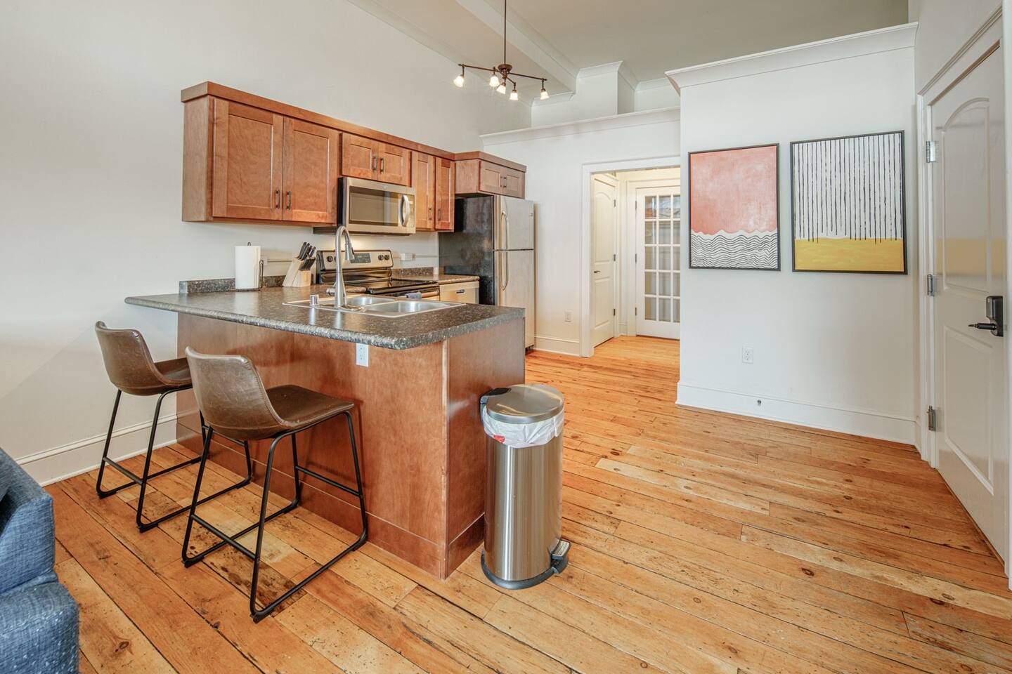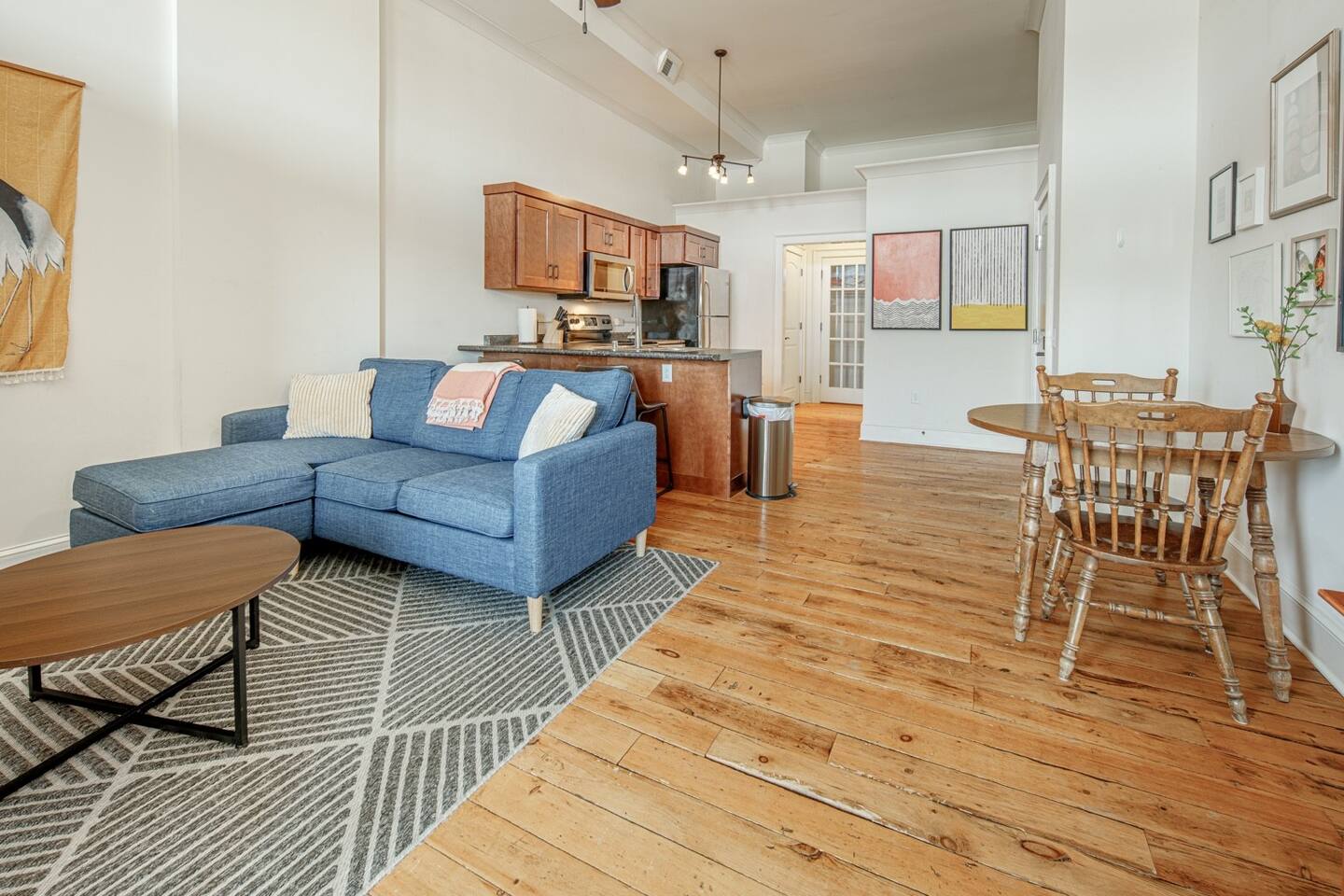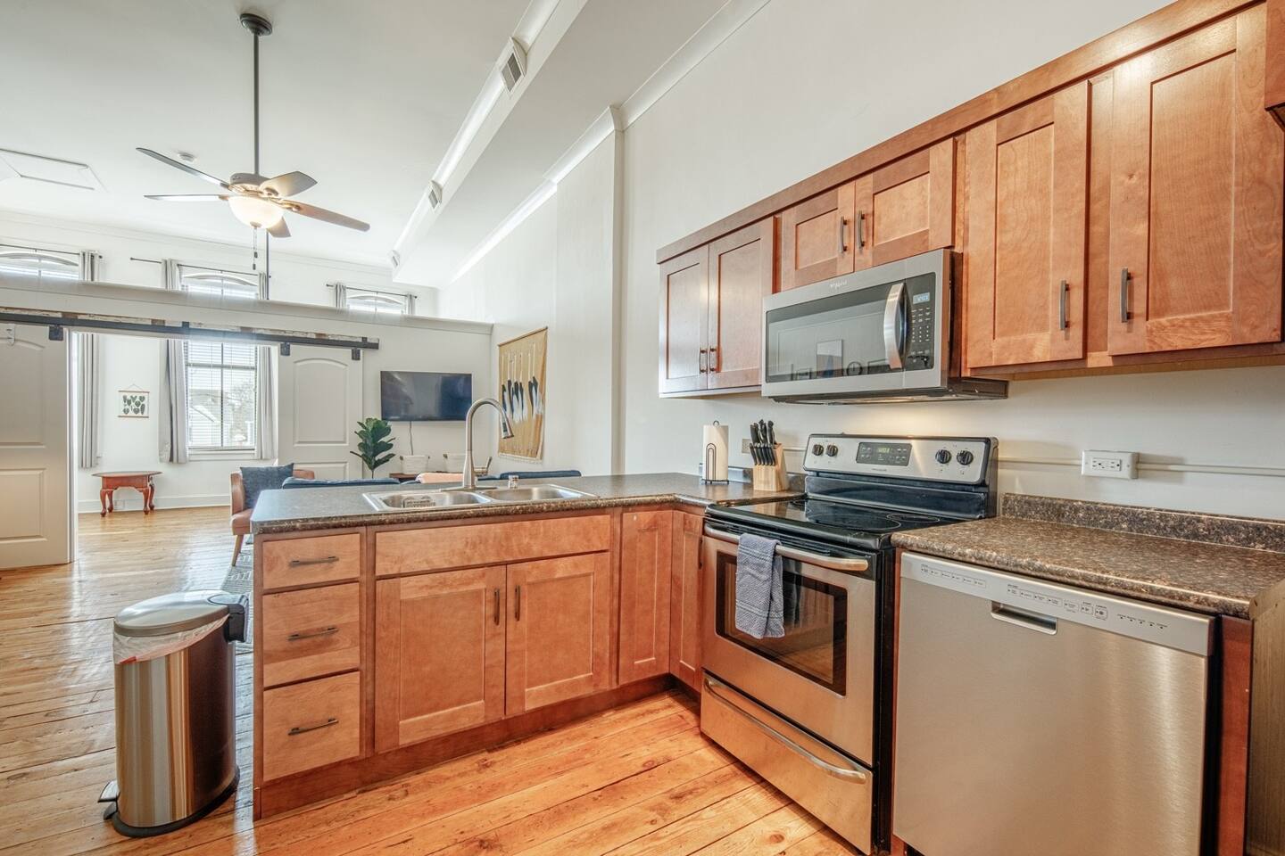 Enjoy all the charm of Monroe’s Historic Square from this bright and spacious one-bedroom loft! With vaulted ceilings, large windows, and a cozy living space, it’s the perfect blend of comfort and character. 🛏 Cozy Bedroom – Queen bed with soft linens 🍽 Fully Equipped Kitchen – Stocked for your stay 🚿 Modern Bathroom – Clean & fresh 📍 Prime Location – Walk to restaurants, cafés & shops Steps from the best of Monroe, this loft is perfect for a weekend getaway or business trip.